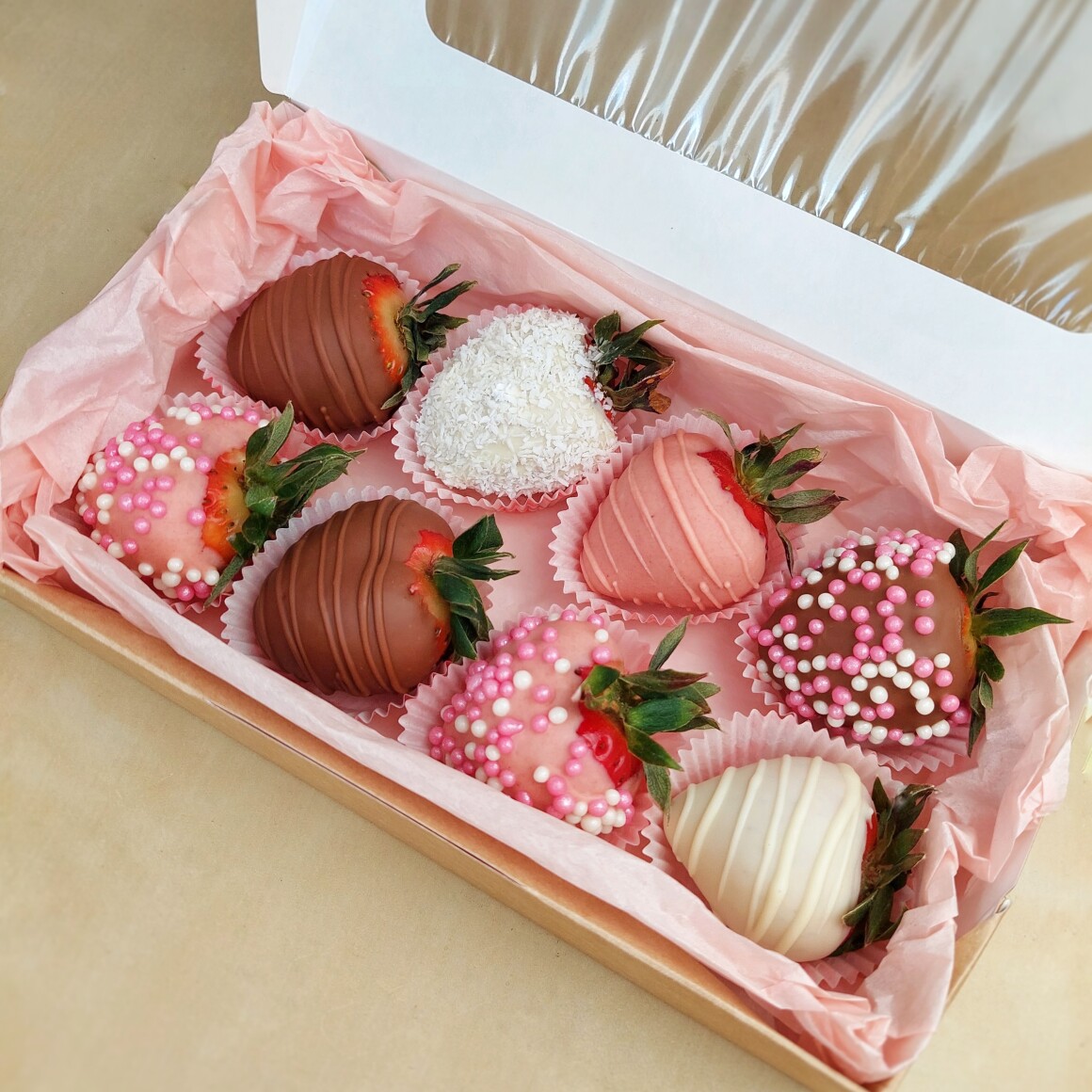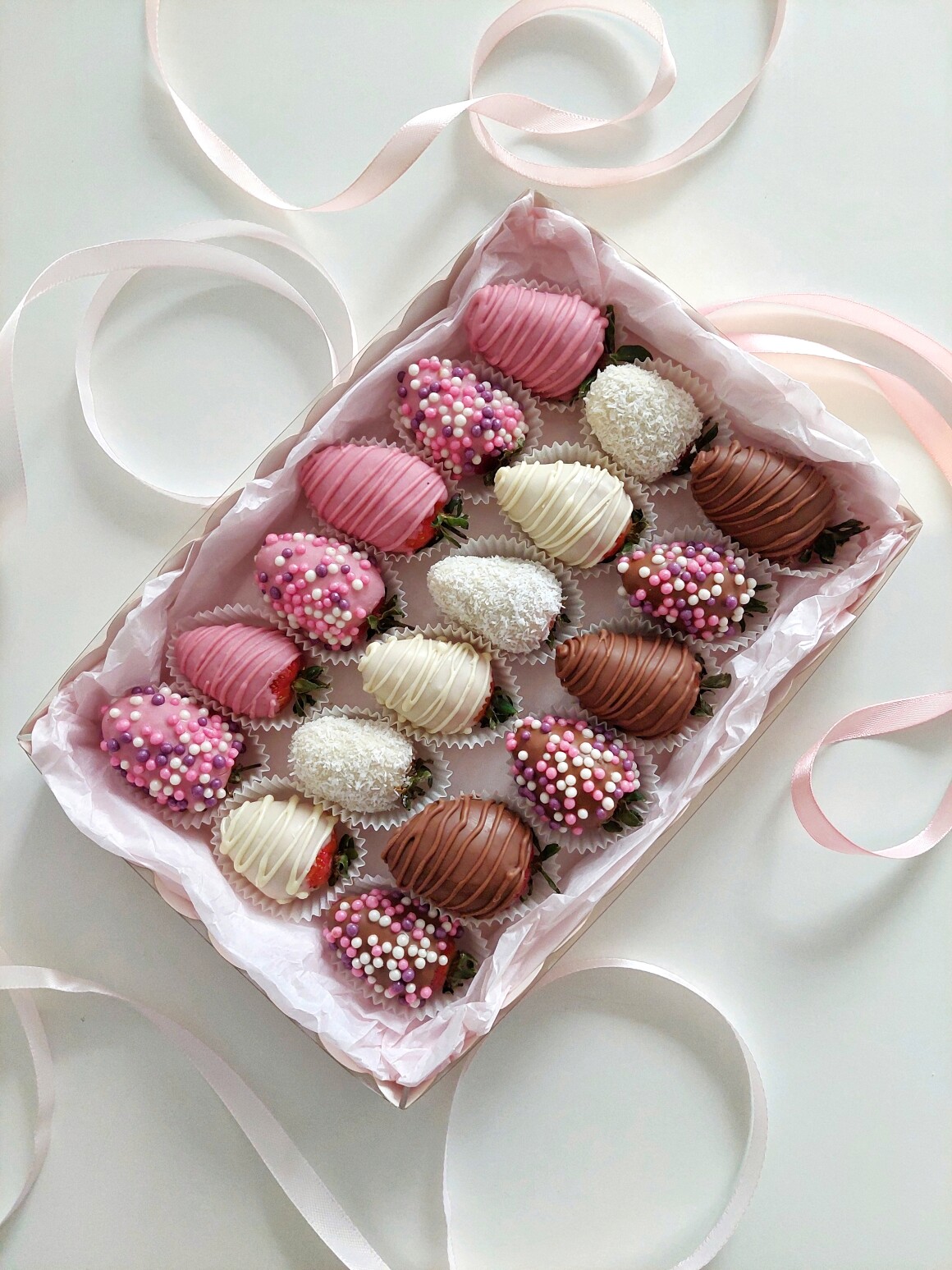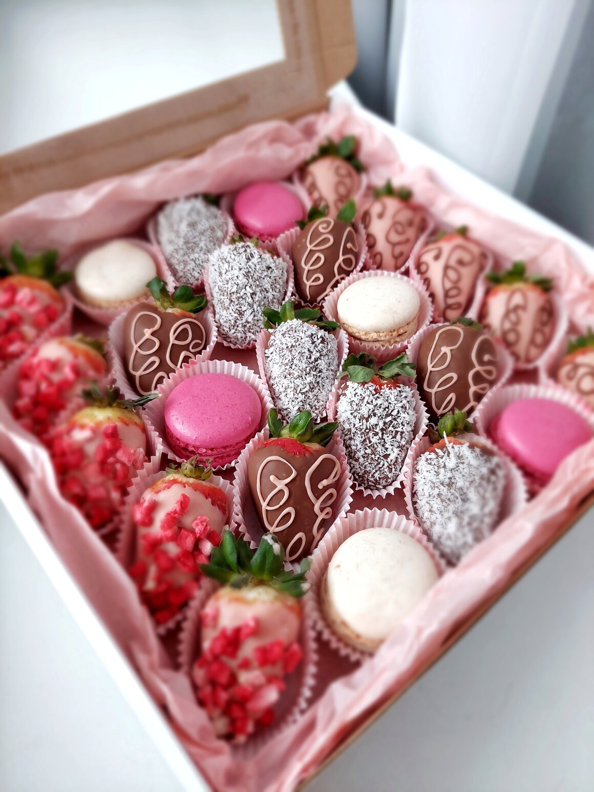 Клубника в шоколаде с маршмеллоу в шляпной коробке